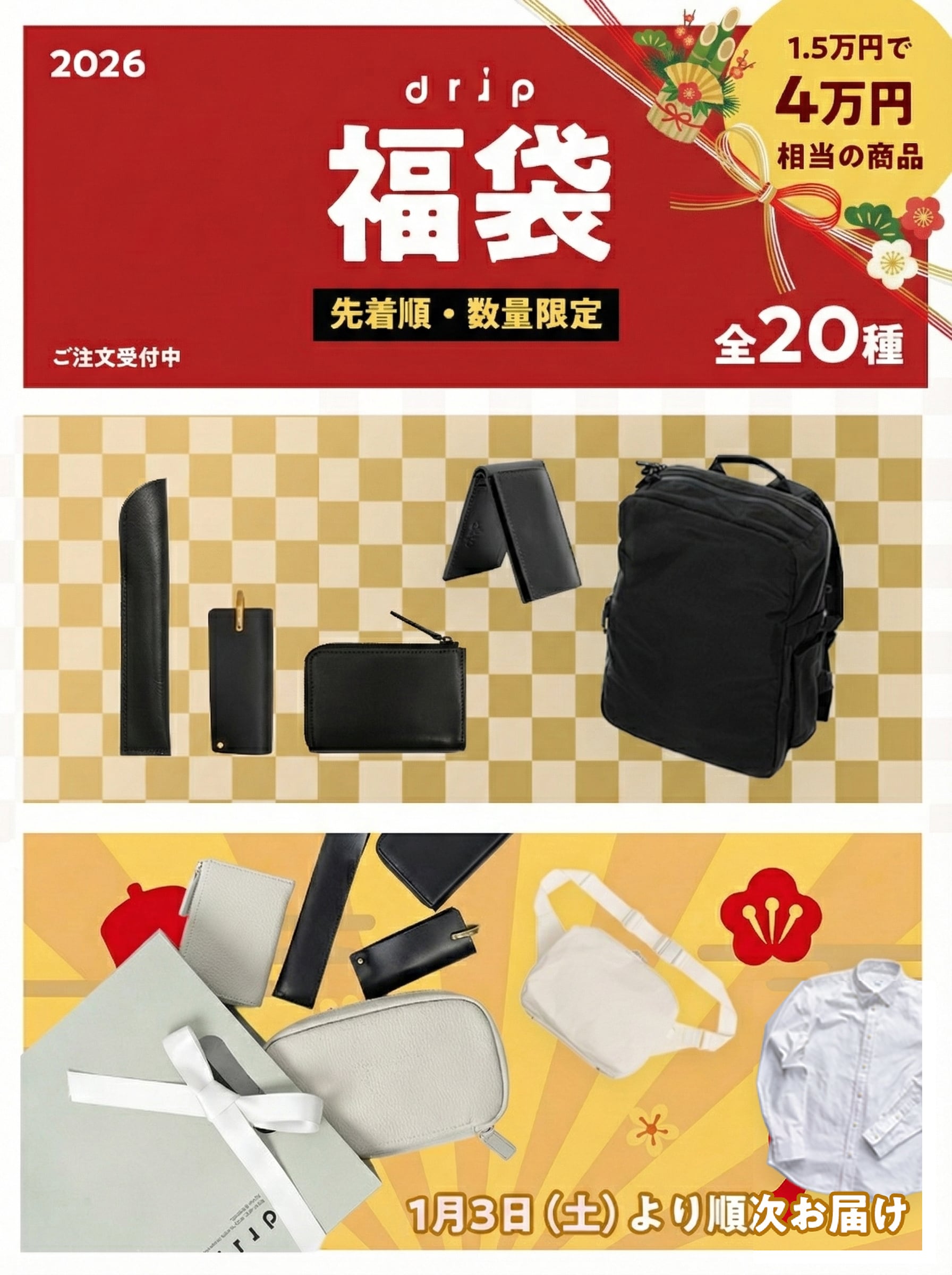 ・商品内容:約40,000円分のdrip商品(内容はお選びいただけません。届いてからのお楽しみです)